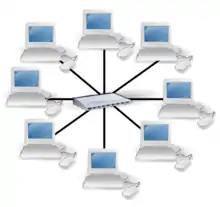 У центрі мережі з даною топологією міститься не комп'ютер, а спеціальний пристрій — концентратор або, як його ще називають, хаб (hub), що виконує ту ж функцію, що й репітер, тобто відновлює сигнали й пересилає їх в усі інші лінії зв'язку.