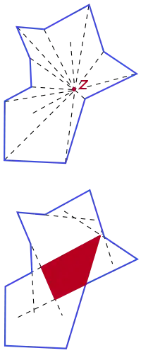 Формально многокутник P є зіркоподібним, якщо існує така точка z, що для кожної точки p з P відрізок zp цілком лежить у межах P.[1]