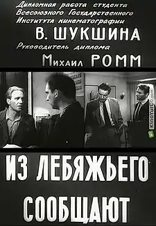«З Лебединого повідомляють» (рос. Из Лебяжьего сообщают) — радянський короткометражний художній фільм 1960, дипломна робота студента ВДІКу Василя Шукшина, що стала його першим самостійним фільмом. Шукшин виступив у фільмі не тільки як режисер і сценарист, але й зіграв одну з головних ролей. Фільм розповідає про один день сільського райкому партії в жаркий період літніх жнив.