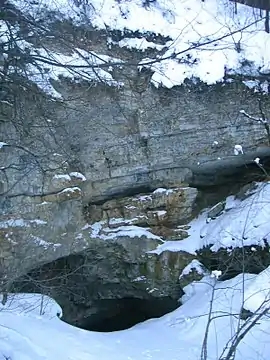 ![]() Вхід до печери взимку | |