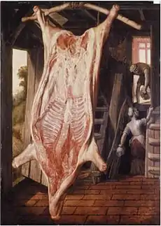 - Заколота свиня (1563); дуб, масло, 114 × 83 см, музей Вальраф-Ріхарц, Кельн
