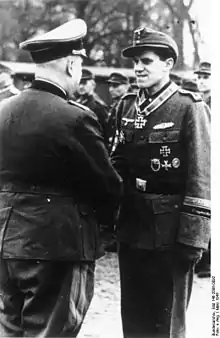 - Лицарський хрест Залізного хреста (12 березня 1945) — за заслуги під час боїв у Сицилії в липні-серпні 1943 року.