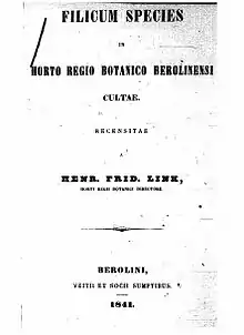 - «Filicum species in horto regio Berolinensi cultae», Берлін, 1841.