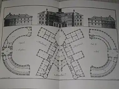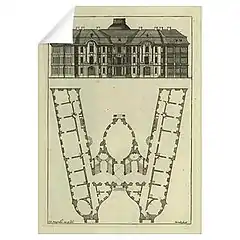 Архітектор Штейнгрубер. План у вигляді літери S. Зверху — бічний фасад