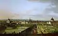 Бернардо Беллотто, «Вид Відня з Бельведера», 1759—1761; зображені палац Нижній Бельведер, садовий фасад.