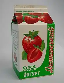 Йогу́рт[2][3][4], також йо́гурт[5][6][неавторитетне джерело] (від тур. yoğúrt) — кисломолочний продукт, що виробляється шляхом квашення молочної основи чистими культурами молочнокислих бактерій Lactobacillus bulgaricus i Streptococcus thermophilus (термофільний стрептокок) з можливим додатковим використанням інших культур.