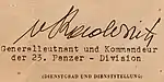 - Дубове листя (№ 882; 9 травня 1945) — як генерал-лейтенант і командир 23-ї танкової дивізії.