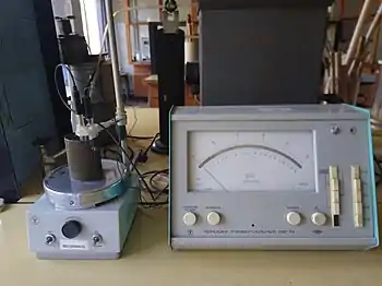 Вихідний сигнал (Евих), пропорційний рН пульпи, подається на вторинний прилад — міст постійного струму. На рудних збагачувальних фабриках набули поширення рН-метри з датчиком типу ДПр-5254 і багатоканальний аналізатор концентрацій реагентів та рН середовища «Реагент 3Б» або АЖЭ-8.