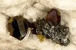 | Показник заломлення | nα = 1,612 nβ = 1,652 nγ = 1,675 |