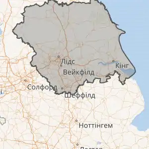 | Західний Йоркшир * | 5. Вейкфілд, 6. Кіркліс, 7. Калдердейл, 8. Бредфорд, 9. Лідс | ||