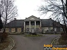 Добре збереглись елементи інтер'єру центрального приміщення садиби (фриз) і трохи гірше - фасаду (іонічні колони). Загалом, будинок є одноповерховим, одинадцятиосним, лише середня частина приблизно на півповерха вища. У фронтальній частині є дещо висунутий вперед ризаліт з портиком, який має чотири колони іонійського ордеру .
