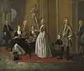 Йосип ван Акен віднесений істориками мистецтва до майстрів розмовного жанру. До перших творів цього жанру в Британії 18 ст. віднесена композиція «Англійська родина біля чайного столу» (бл. 1720 р.) яка саме родина подана художником — не вдалося довідатися. Чай і цукор як колоніальний товар, срібний посуд і порцеляна, котрою сервіювали стіл, були надто дорогими, коштовноми продуктами і речами. Їх могла дозволити собі тільки досить заможна родина. Чаювання на якийсь період було покажчиком високого суспільного стану британської родини. Лише згодом чай і цукор здешевшають і стануть більш доступними пересічним мешканцям.