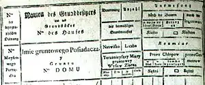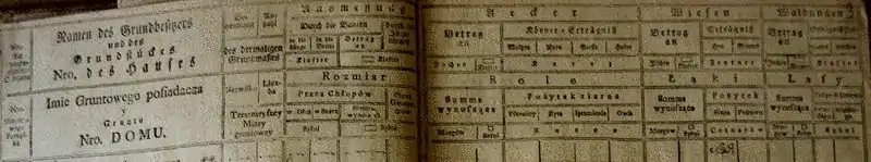 - книгу поземельного прибутку (метрикальну книгу) — основний документ земельного кадастру, де фіксувалися дані про власника, площу, категорію, прибутковість та інші відомості про земельні угіддя;