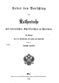 - Josef Jireček: Über den Vorschlag, das Ruthenische mit lateinischen Schriftzeichen zu schreiben. — Wien : K.u.K. Ministerium für Cultus und Unterricht, 1859.