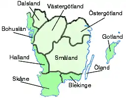 Регіон Йоталанд формують 10 історичних провінцій (ландскапів):
