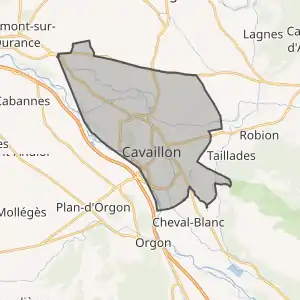- Розташування муніципалітету Кавайон на мапі Франції та сусідні муніципалітети