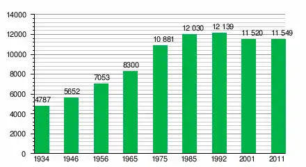 За даними перепису населення 2011 року у місті проживали 11 549 осіб.