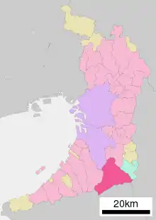 - Хіґашіде М. Історія міст префектури Осака. Адміністративний поділ Японії. (японською). Архів оригіналу за 25 червня 2013. Процитовано 20 вересня 2012.