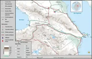 - На сході — Терсько-Кумська низовина з річками Терек і Кума