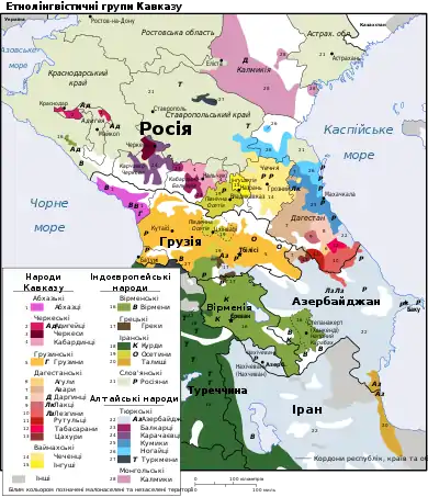 Мови Кавказу належать до картвельської, тюркської, індоєвропейської та північнокавказької (нахсько-дагестанської та абхазо-адигської) мовних сімей.