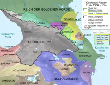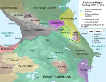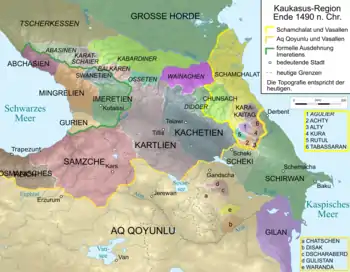Надалі країни Кавказу потрапляють під вплив Османської та Перської імперій; у цей період кавказькі держави перебувають у залежності від них, та унезалежнюються за можливості. Після завоювання Астраханського ханства у XVI столітті Московія виходить на кордони Кавказу, а у XVII столітті, розбивши Ногайську орду, у північнокавказькі степи зі сходу прибувають калмики.