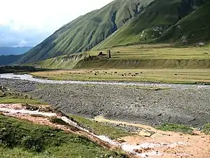 - На заході — Колхідська низовина в Грузії з головною річкою Ріоні