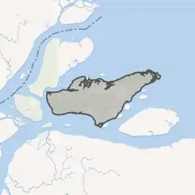 ![]() Супутниковий знімок островів дельти Амазонки: Каванія — найбільший острів на північ від Маражо | |