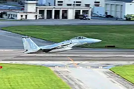 ![]() Винищувач F-15C злітає з аеродрому в Кадені | ||||