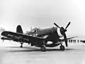 Палубний винищувач F4U «Корсар» Корпусу морської піхоти на льотному полі щойно захопленого острову Окінава. 9 квітня 1945