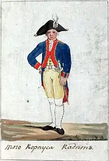 - Шкловськое благородне училище (1788); Гродненський кадетський корпус (1795); Смоленський кадетський корпус (1806); Перший Московський кадетський корпус (1837); 1-й Московський Імператриці Катерини Великої кадетський корпус (1903)