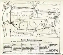 | Дмитрівська проїзна башта розібрана після пугачовського штурму. Свою назву вежа отримала від розташованої поруч з нею церкви Святого великомученика Димитрія Солунського. | |