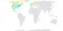 ![]() Ареал поширення чорної казарки Осіле проживання Гніздування Зимування | ||||||||||||||||