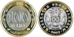 ![]() Монета 100 теньге 2002 року | |