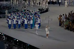 Збірна Казахстану під час Параду націй на церемонії відкриття Олімпіади