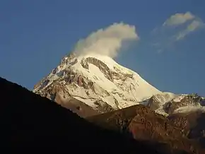 Казбек (груз. მყინვარწვერი, трансліт. Мкінвар_цвері) або მწვერვალი ყაზბეგი (мцвервалі Казбеґі) — Льодовика наконечник або пік Казбек), ос. Сæна, Хъазыбег або Чырыстийы цъупп, чеч. Башлам) — стратовулкан, найсхідніший п'ятитисячник Кавказу, розташований у східній частині центрального Кавказу, на кордоні Грузії і Росії (Північна Осетія).