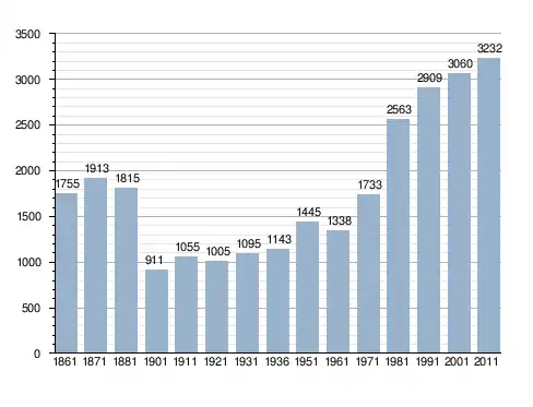 Станом на 31 грудня 2014 року в муніципалітеті офіційно проживали 104 іноземці з 27 країн, серед них 39 громадян країн Євросоюзу та 3 громадяни України.[4]
