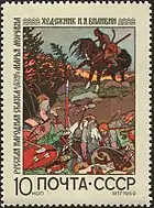 «Мар'я Моревна». Іван-царевич зустрічає «рать-силу побиту». | 10 коп. | 20 листопада 1969 року |