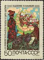 О. С. Пушкін. «Казка про царя Салтана». Гвидон з царицею милуються новим містом. | 50 коп. | 20 листопада 1969 року |
