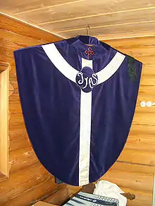 - фіолетовий — під час Адвенту та Великого посту, в Месах за померлих;