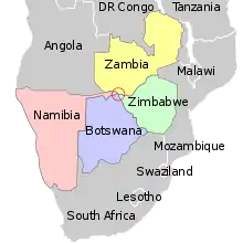 Kazungula ![]() Координати 17°47′25″ пд. ш. 25°16′10″ сх. д.