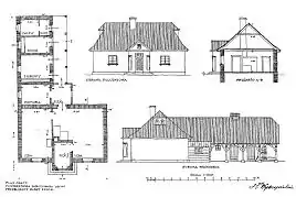 - Типові проєкти сільських хат, створені для виданої 1915 року збірки «Odbudowa polskiej wsi» (Відбудова польського села). Це зокрема одна однокімнатна і п'ять варіантів двокімнатної для селян-рільників, одна двокімнатна для безземельного селянина, а також двокімнатна з окремою будівлею для стодоли і шопи.[12]