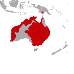 Вид поширений на значній частині Австралії та на півдні Нової Гвінеї. Уникає спекотних пустель та густих тропічних лісів.