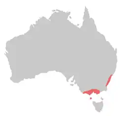 Ендемік Австралії. Поширений на заході Вікторії та у південній частині Нового Південного Уельсу. Завезений у великі міста Австралії (Перт, Брисбен, Гобарт, Сідней тощо), де непогано прижився. Живе у відкритих лісах та буші. Легко пристосовується до деградованих середовищ проживання. У містах трапляється в парках.