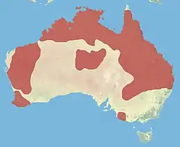 Ендемік Австралії. Живе у сухіших регіонах ніж інші види какатоїсів, але уникає спекотних пустель. Він широко поширений у широкій смузі по всій північній половині країни, де його вважають сільськогосподарським шкідником. На півдні його ареал фрагментарний. Трапляється у різноманітних середовищах проживання — від бушу до густих тропічних лісів.