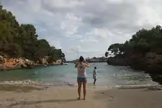 Широкий морський рукав закінчується пляжем, розташованим між крутих скель, і приблизно у 100 метрів інший мис відділяє його від сусідньої бухти Кала-Феррера.