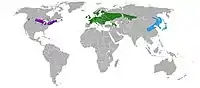 Південна межа євроазійського ареалу калини перетинає Ангару дещо вище Ангарська і північними передгір'ями Східних Саян доходить майже до широти Красноярська; потім, перетинаючи цей хребет майже в меридіальному напрямку, йде до Західних Саян і південніше Абакана (53° сх. ш.) перетинає Єнисей. Далі, спускаючись до півдня по передгір'ях Західних Саян, межа ареалу доходить до Алтаю, проходить тут приблизно по 52° сх. ш. Потім через Семей — Павлодар — Омськ, перетинаючи річки Ішим і Тобол, проходить Курган і виходить до Уральського хребта.