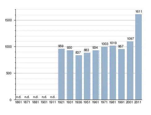 Станом на 31 грудня 2014 року в муніципалітеті офіційно проживали 193 іноземці з 27 країн, серед них 47 громадян країн Євросоюзу та 1 громадянин України.[4]