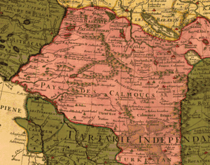В 1771 році більша частина калмиків повернулася з Волги на Джунгарську рівнину, нинішній китайський Сіньцзян.