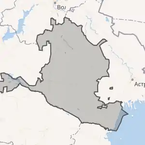 Межує на півдні зі Ставропольським краєм, на південному сході — з Республікою Дагестан, на півночі — з Волгоградською областю, на північному сході — з Астраханською областю, на заході — з Ростовською областю.