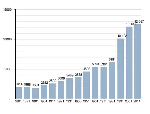 Станом на 31 грудня 2014 року в муніципалітеті офіційно проживало 189 іноземців з 31 країни, серед них 50 громадян країн Євросоюзу та 63 громадяни України.[4]